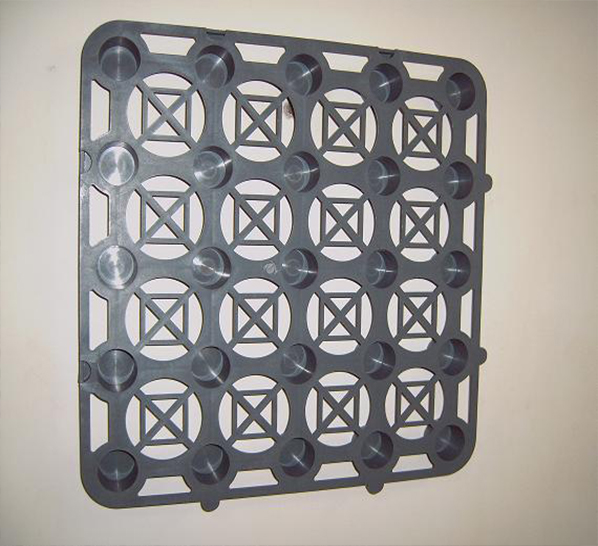 3. 用于做建筑夾層板時(shí),蓄排水板鋪設(shè)在屋頂混凝土板上,蓄排水板外再砌一層單墻,或用混凝土來保護(hù),使地下滲水通過排水板的架空空間流入盲溝對(duì)集水坑。