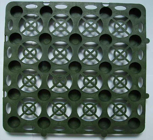 該種板材自身就具有蓄水、排水兩種綜合功能,板材具有空間剛度極高的特點(diǎn),抗壓性明顯優(yōu)于同類產(chǎn)品(可以通過現(xiàn)場試驗(yàn)檢驗(yàn)),能夠承受400Kpa以上的高抗壓負(fù)荷,同時(shí)可以承受在種植頂板回填土過程中機(jī)械碾壓的極端負(fù)荷情況。